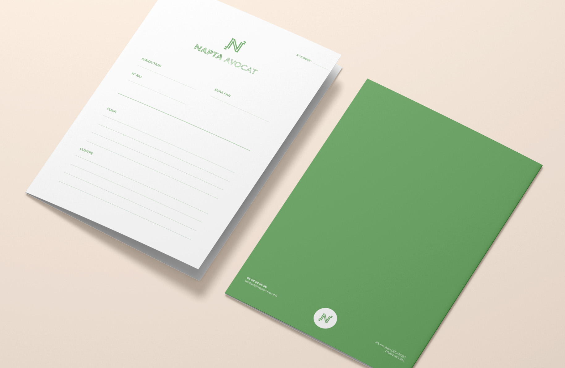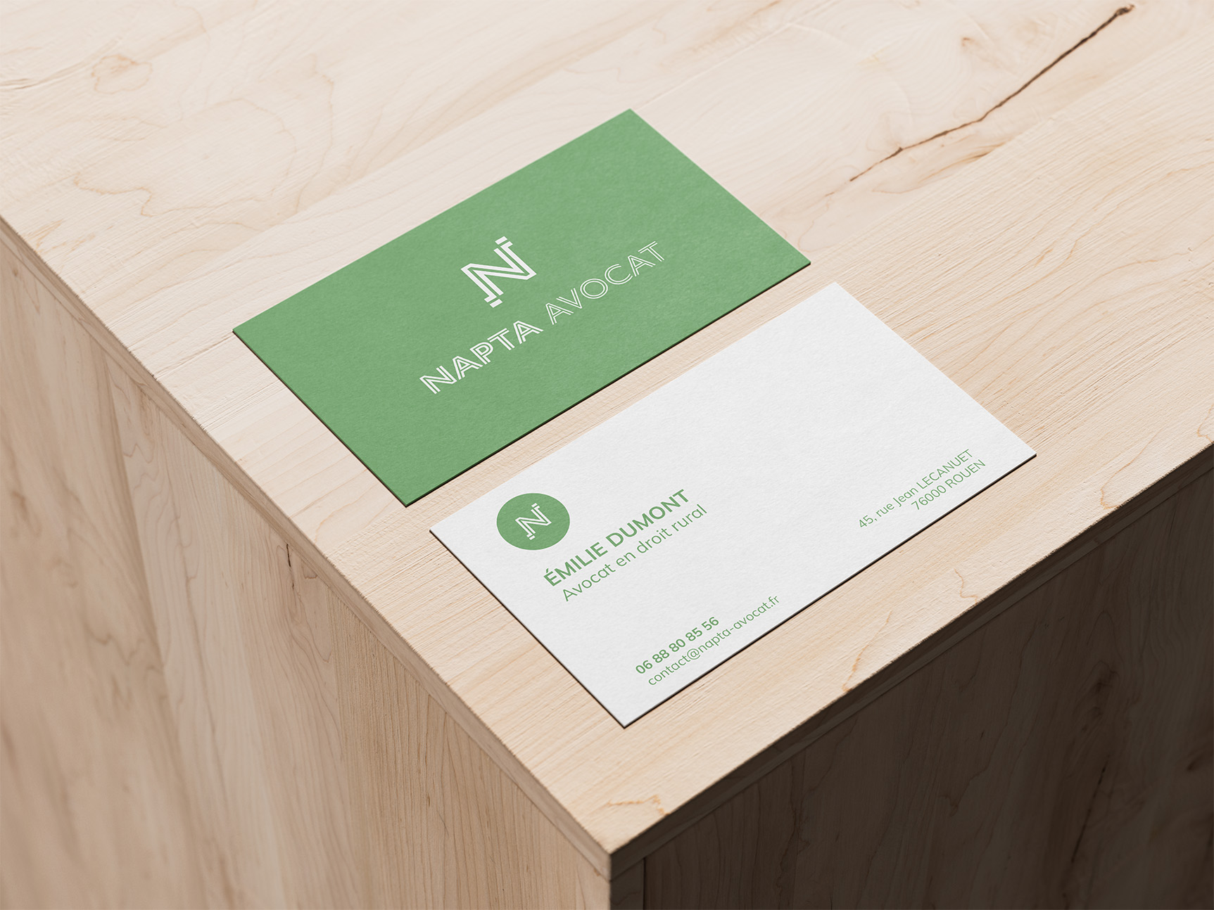 Dans la continuité du logo NAPTA Avocat, le design des cartes de visite et de la papeterie a été pensé dans un esprit sobre mais efficace.